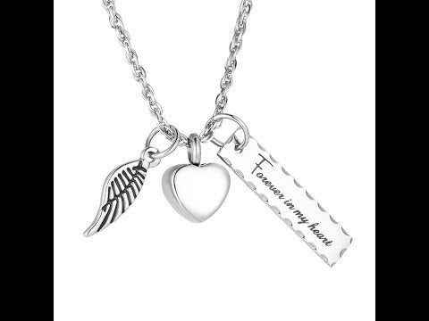 Cremation Pendant with Angle wing, Heart and Bar